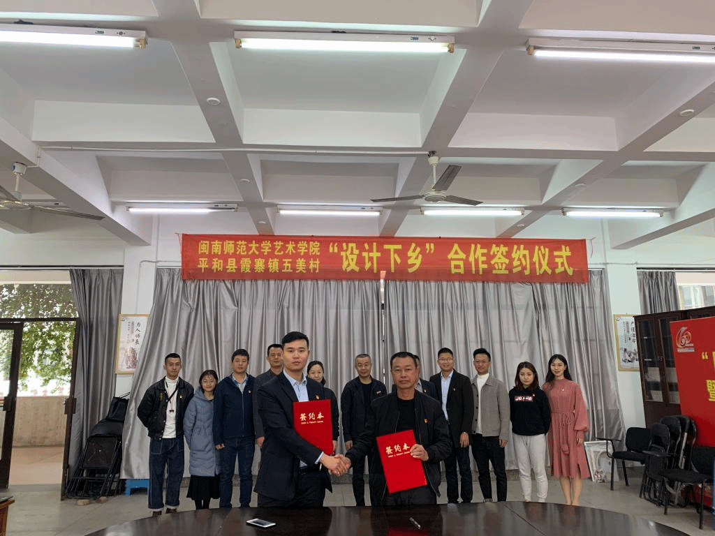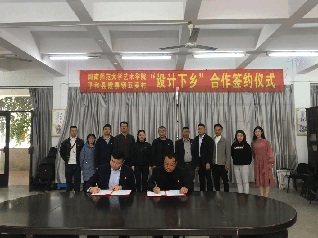 与平和县霞寨镇五美村签订“设计下乡”合作协议,学院党政领导及平和县霞寨镇五美村领导出席签约仪式。