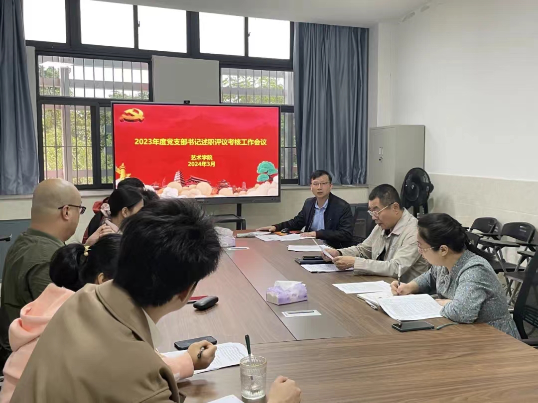 于杨孙西艺术馆303会议室召开2023年度党支部书记抓基层党建工作述职评议会。学院领导班子成员、党委委员,各党支部书记及师生党员代表参加会议。会议由学院党委书记汤跃滨主持并做点评发言。