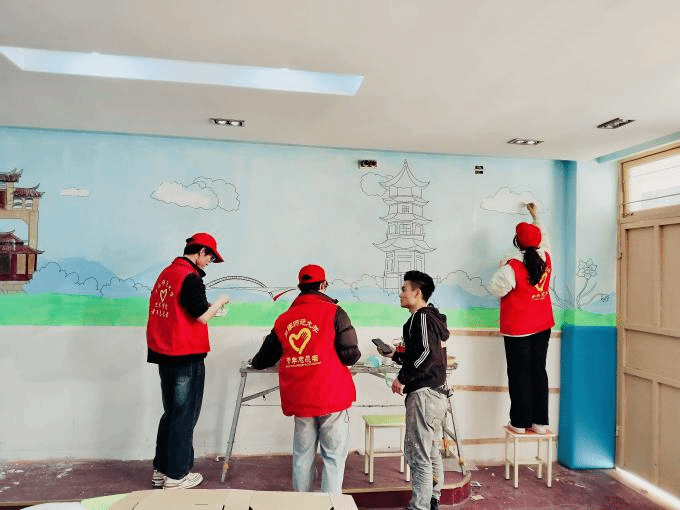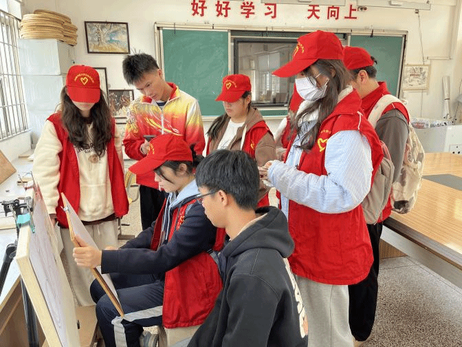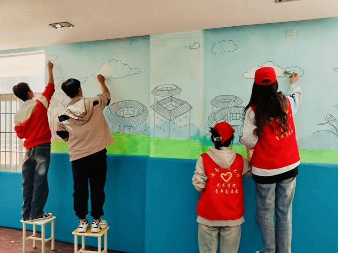 在绘画课堂上,志愿者们耐心地指导同学们调色、构图,并鼓励他们发挥想象力,创作出属于自己的作品。墙绘环节更是将校园变成了一片色彩斑斓的海洋,志愿者们与大家共同绘制出一幅幅充满童趣和正能量的画作,将校园装点得更加美丽。在志愿者的指导下,手绘教学环节让同学们体验到了艺术创作的乐趣,同学们绘画的每一步都凝聚着大家对艺术的热爱,更体现了他们对美好未来的憧憬。