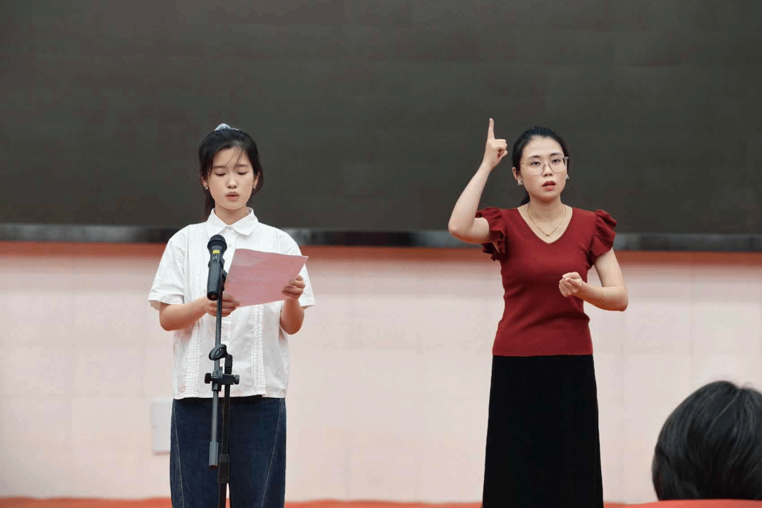 学生第一党支部党员同志化身“志愿服务先锋”,深度参与协助布置舞台、维护现场秩序等助残志愿服务全过程。同时,漳州市阳光学校的同学们用精彩的舞蹈《灯火里的中国》、《弦歌》和沙画艺术《大爱无疆》,向大家展现了残障群体对艺术的热爱与坚韧乐观的精神风貌,党员志愿者们在互动中进一步坚定了以志愿服务践行初心的决心。