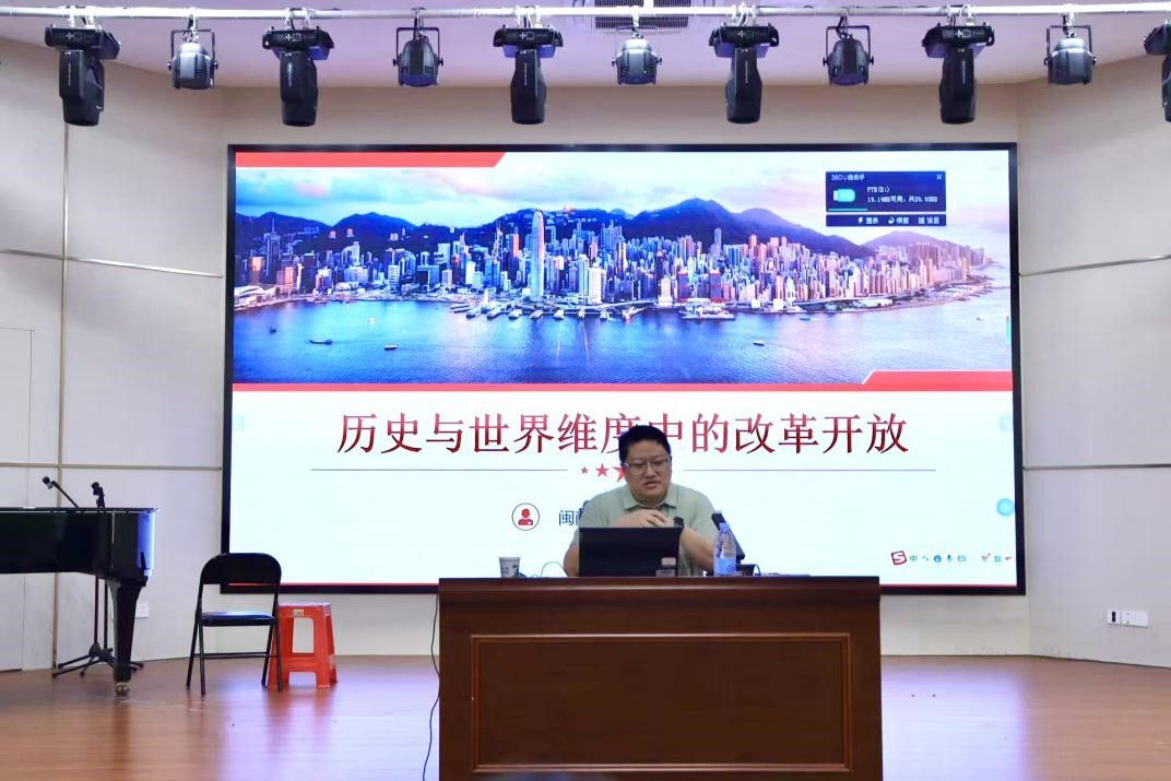 5月10日,动漫在线 商学院党委书记周霖以《历史与世界维度中的改革开放》为题,深入剖析改革开放成功之因,解析了共产党员在制度创新与思想解放发挥的先锋模范作用。同时,周霖老师讲述了作为一名中共党员应该如何在新时代续写改革开放的伟大成就,为同学们指引前进方向。