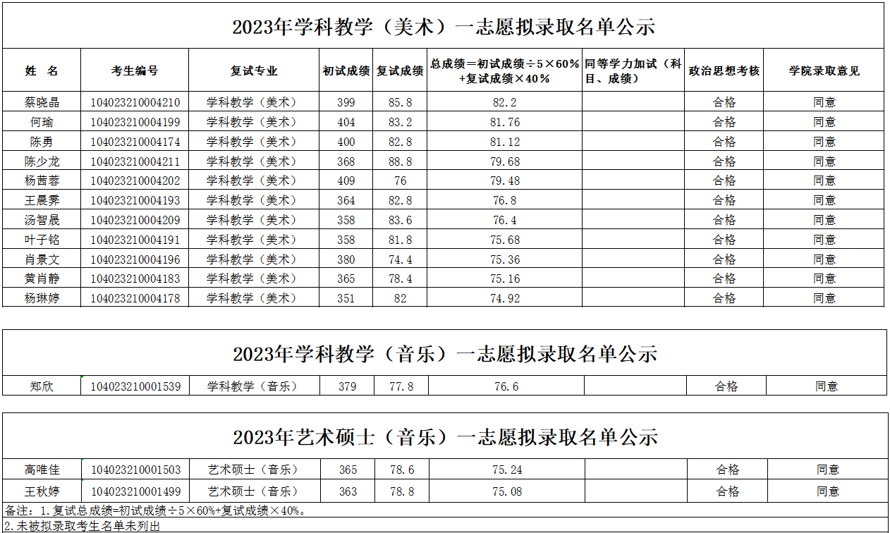 2023年动漫在线 研究生一志愿复试拟录取名单公示