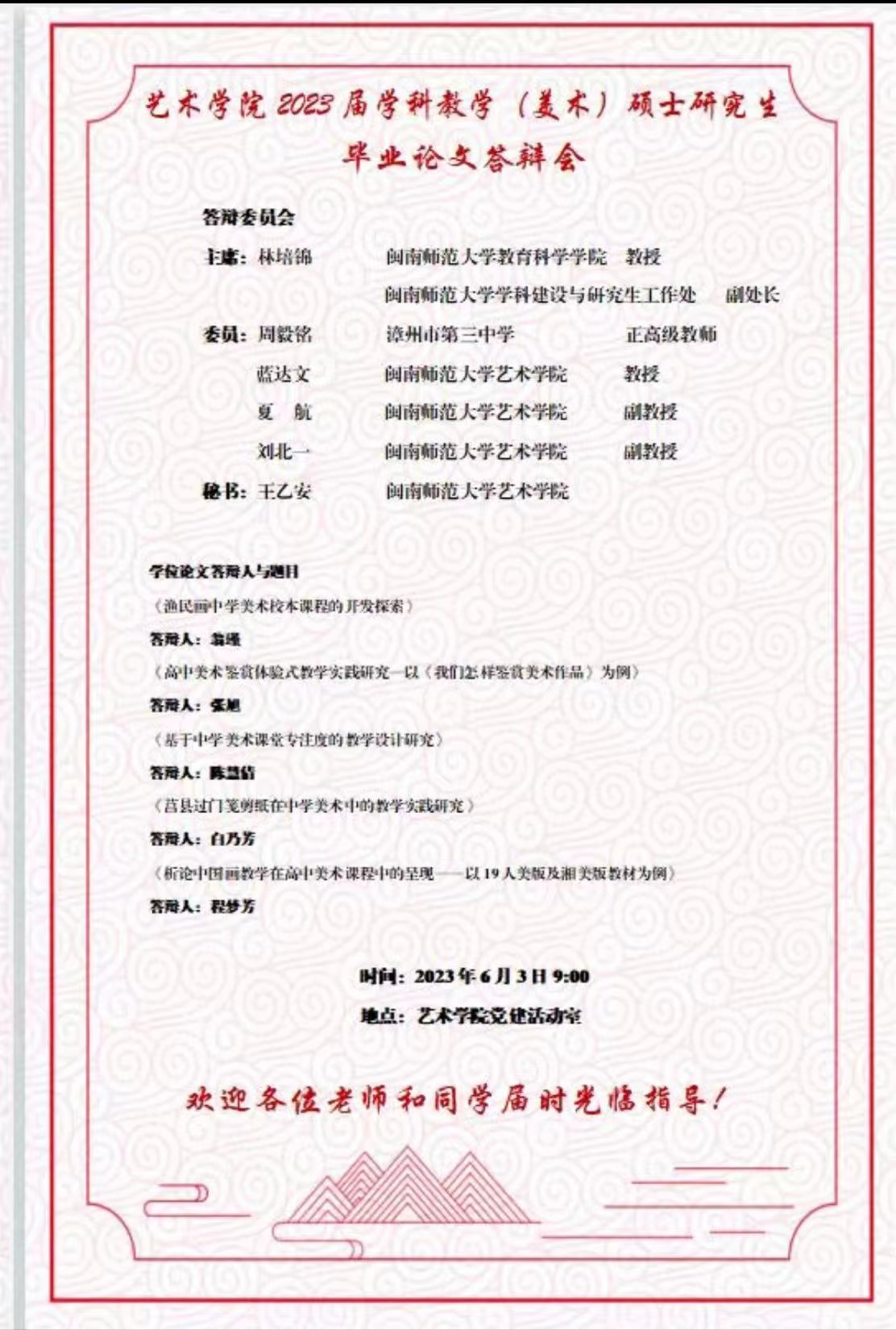 动漫在线 2023届学科教学(美术)硕士研究生毕业论文答辩会
