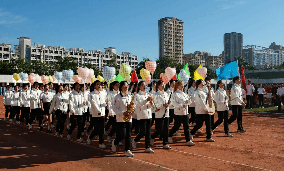 方阵队伍意气风发,步伐铿锵,展现着莘莘学子的昂扬斗志;