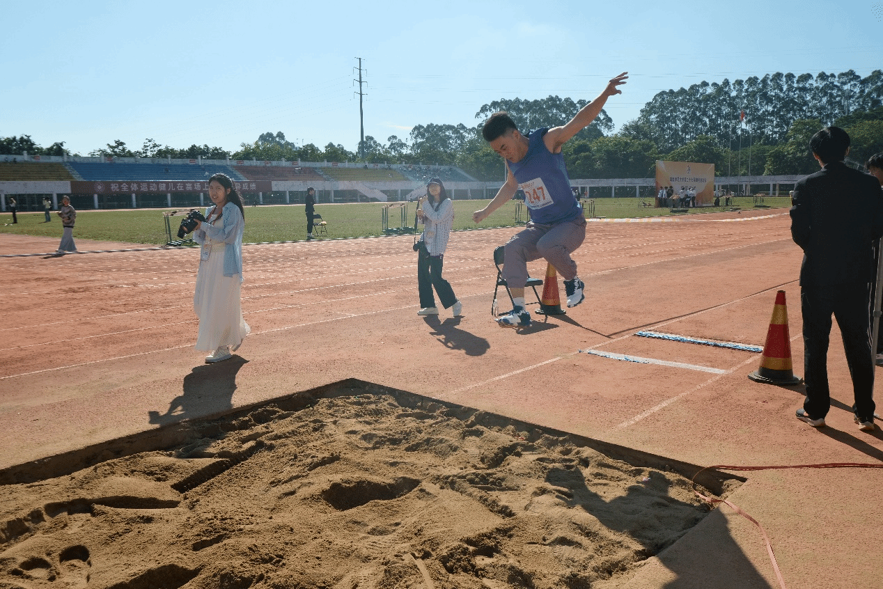 张海良老师在青年男子丙组跳远比赛中荣获第一名