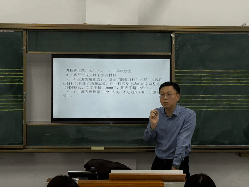 于11月21日晚在旧图302教室举办赛前培训讲座,本次讲座特邀商学院吴智军副教授主讲,旨在为参赛学子厘清职业方向、破解备赛难题,筑牢大赛征程的专业根基。