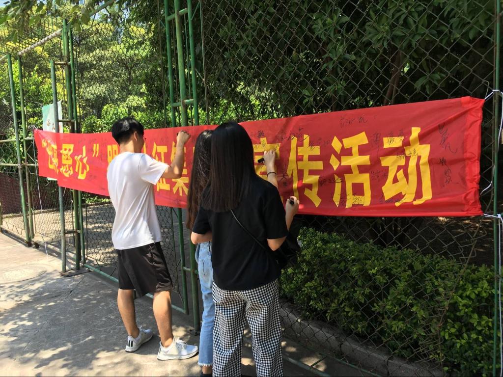 6月26日上午,同学们在瑞京学生公寓入口处设点宣传感恩主题,现场赠送明信片,邀请同学们签名并写下关于“感恩”的一句话。这些设计独特的明信片吸引了不少同学驻足,并纷纷在明信片上写下了关于“感恩”的一句话,有的感恩父母,有人感恩老师,有人感恩母校……同学们通过这小小的一张明信片,表达了自己内心的感恩之情。