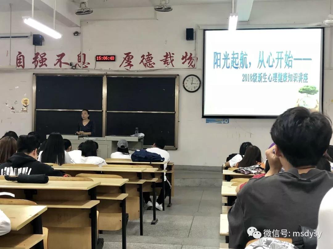 全体新生在笃行楼223教室开展主题为“阳光起航,从心开始”心理健康讲座。
