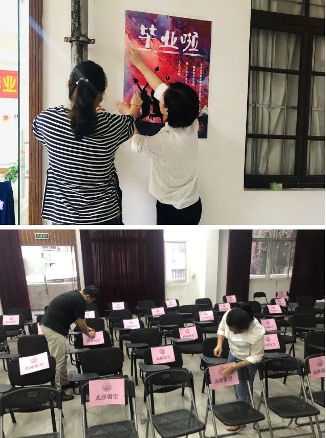 首先是政工队伍的老师们在学院醒目位置张贴毕业海报,布置疫情防控有关要求和标志,为毕业生返校营造温馨、安全的环境同时,也带着老师们对即将毕业学子们未来可期的真心祝愿。
