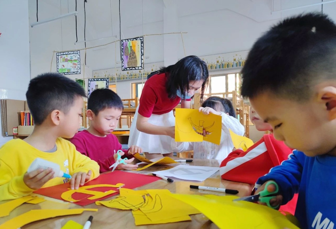 青年志愿者中心组织党员志愿者前往南坑中心幼儿园开展以手工剪纸、唱红歌和识乐器为主要内容的红色公益课堂活动。