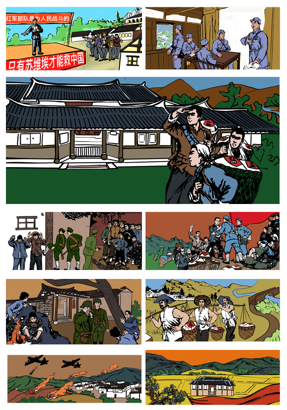在团委副书记茅娜翔、辅导员李新航、庄培勋老师带领之下,实践团23名师生一行前往三明市莘口镇西际村,紧扣“建党百年”主题在西际红军物资转运站、西际体验中心、西际幼儿园等三个场所泼墨作画。粉刷为笔、白墙做纸,丈量尺寸、描边勾勒……团队发挥专业优势,结合党的光辉历程、红军三进三出西际村、红色经典电影等红色素材在墙面进行创作。在过程中,团队成员积极克服各种困难,以良好的精神面貌展现了动漫在线