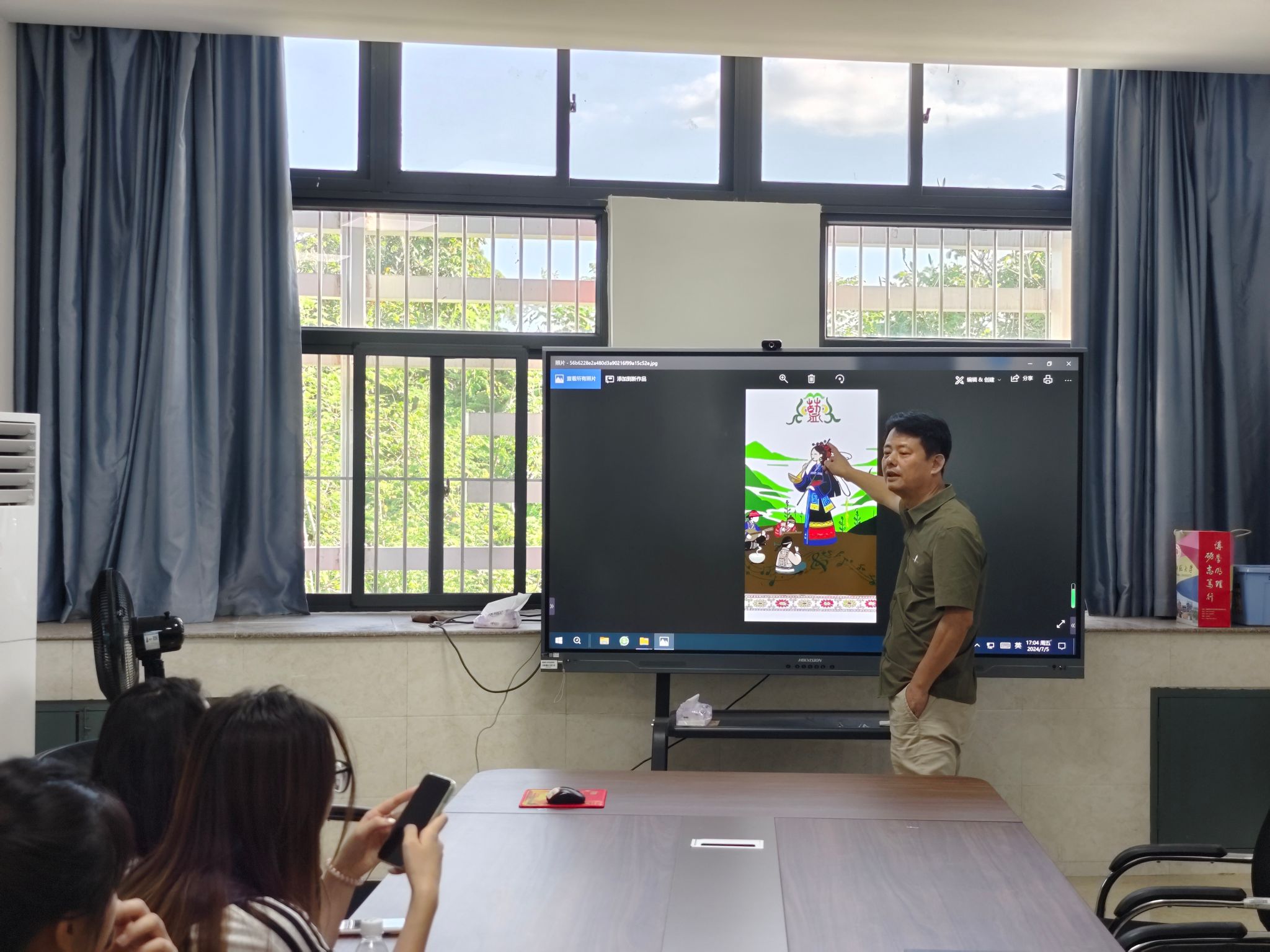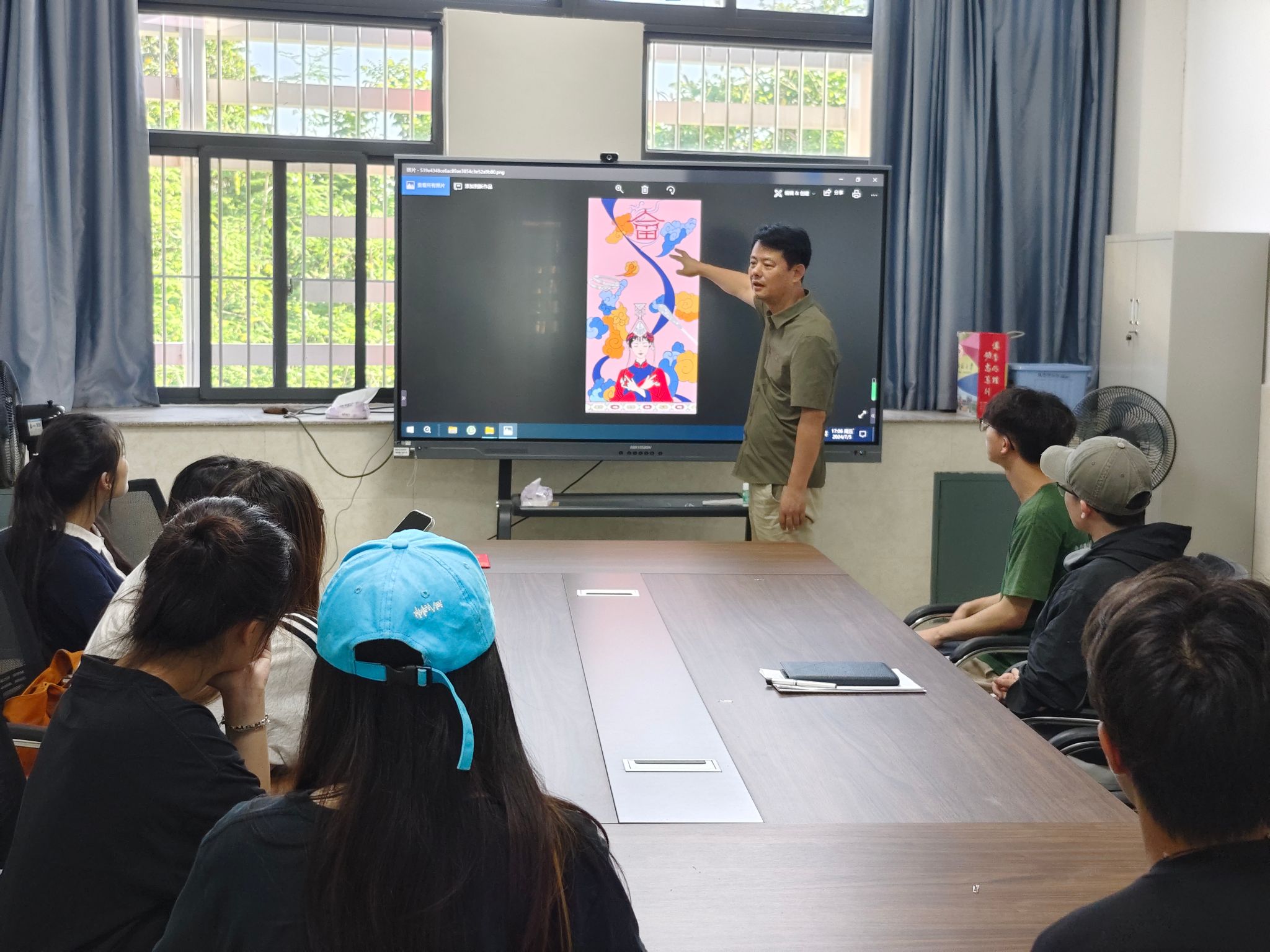 实践活动伊始,实践队对湖西畲族乡展开深入的调查了解。在获得各个墙体的详细数据后,队员们立足湖西畲族乡民族文化特色,充分融合畲族“蓝”与湖西现存历史文化景观,集思广益为湖西畲族乡量身定制墙体设计稿件。经过充分论证与认真修改后,一张张充满创意与个性的稿件呈现在大家面前。蓝达文副院长与实践队员们面对面,点对点展开指导,向队员们讲解畲族元素如何更好的融入设计当中。队员们在蓝达文院长的指导下受益匪浅,画稿质量得到进一步提升。