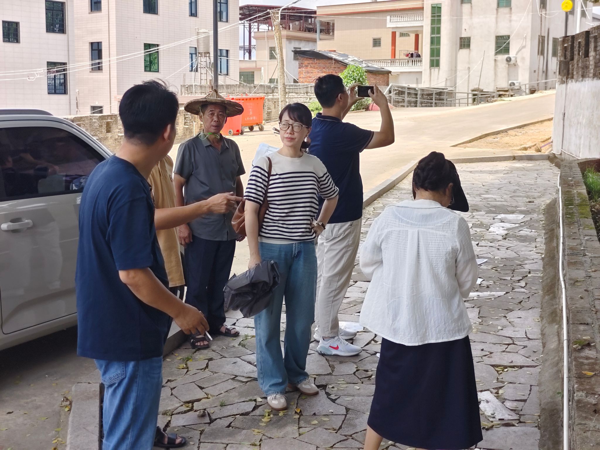 7月6日下午,实践队成员在乡镇政府工作人员的带领下走进湖西,进一步了解畲族与湖西现存历史遗迹,同时现场考察了墙面位置与实际数据,进一步完善绘制方案。