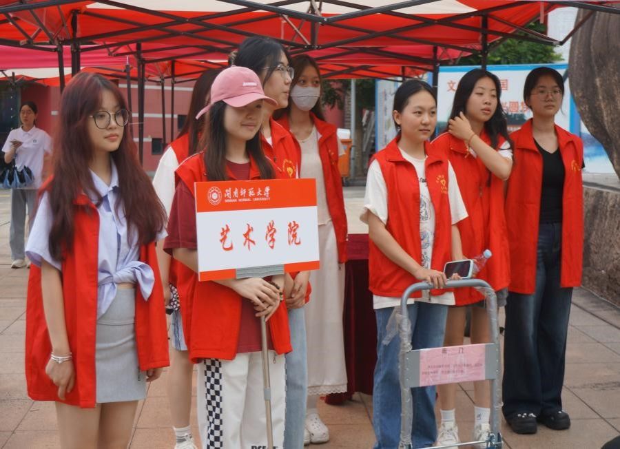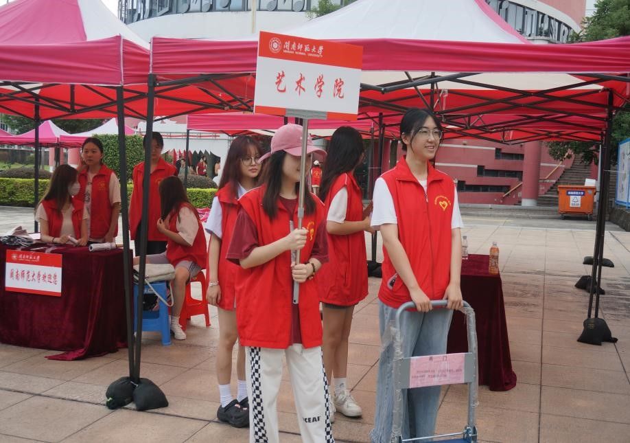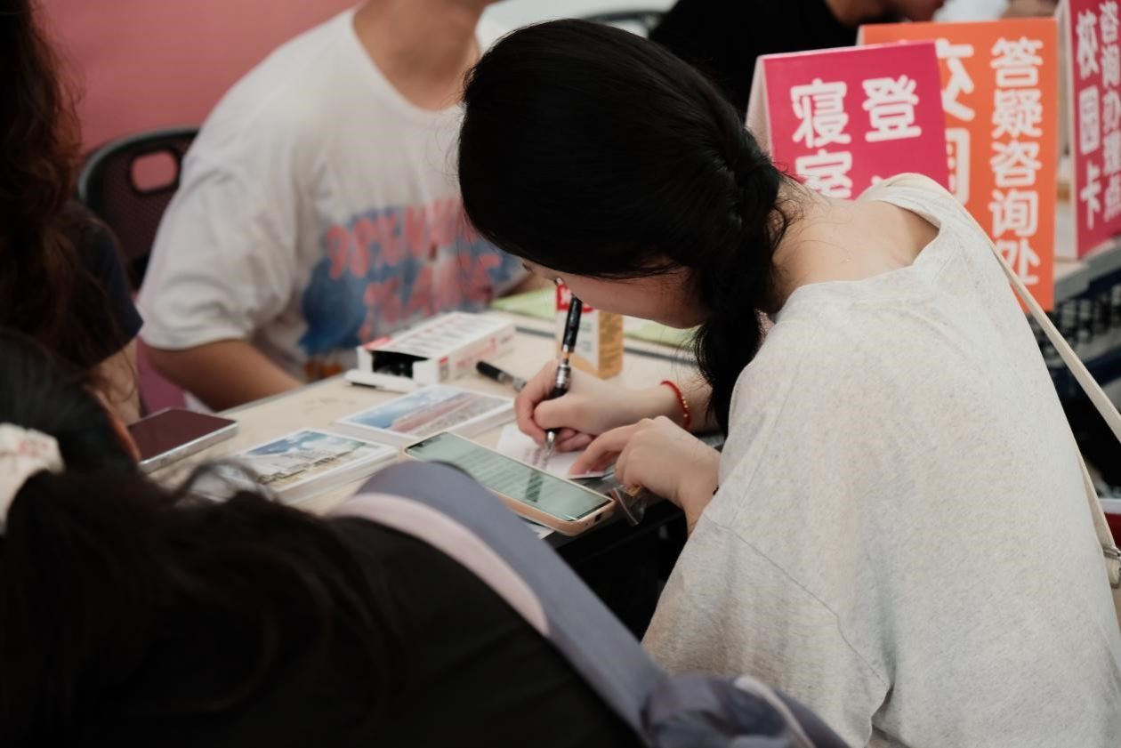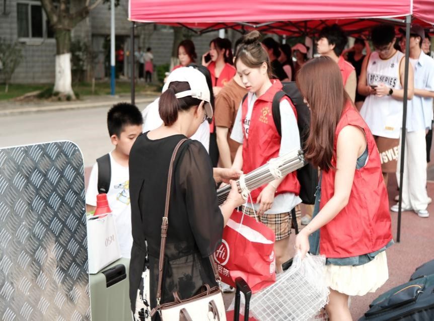 贴心地在校门、校道设置了接站点,引导新同学和家长们抵达报到处。志愿者们在各自的岗位严阵以待,帮助新生搬运行李,为新生指引路线、答疑解惑。在杨孙西报到处,学长学姐们有条不紊地帮助新生完成信息录入、数据核实的工作,用热情的态度与温暖的笑容欢迎新生的到来。