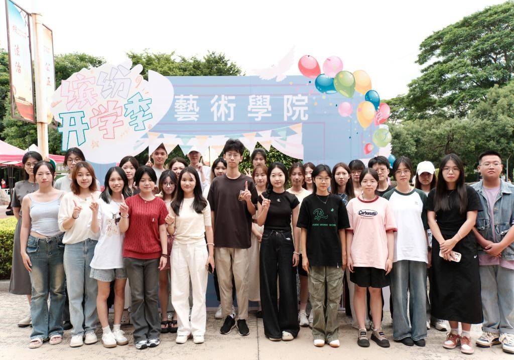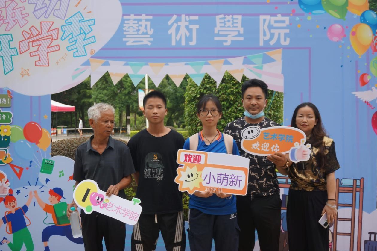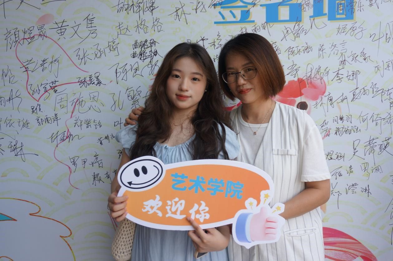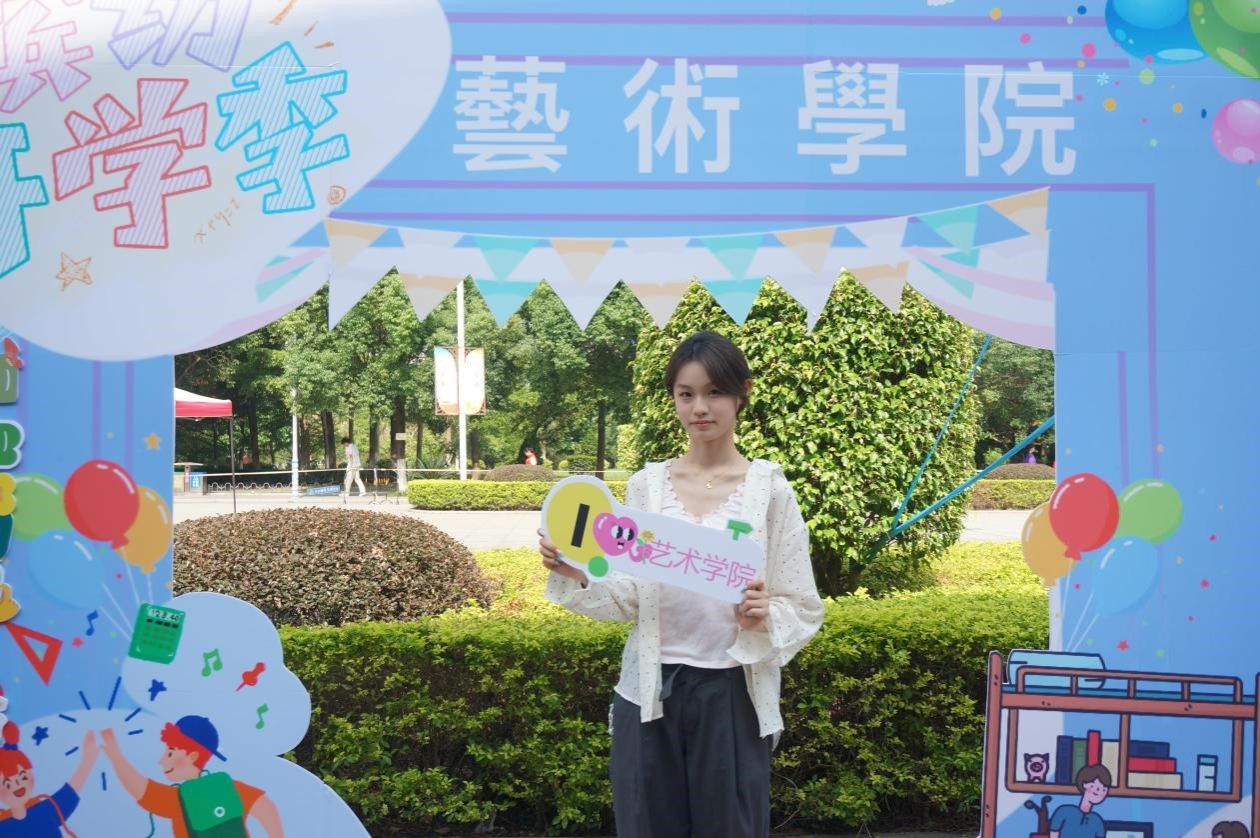 在学院专门定制的特色立牌前,2024级的新同学们在展板前留下了与动漫在线