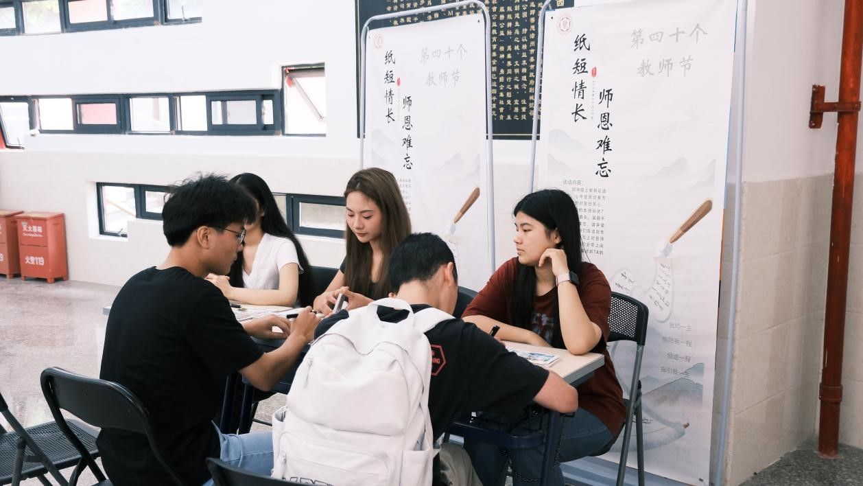 学院还举办了明信片寄语活动,新生们纷纷拿起笔,将自己对老师、家人、朋友的感激之情与美好祝愿化作一行行温暖的文字,这其中有对志愿者辛勤付出的感谢,有对对家人朋友的无限思念,一墓慕温馨的画面,成为了校园中最动人的景线。