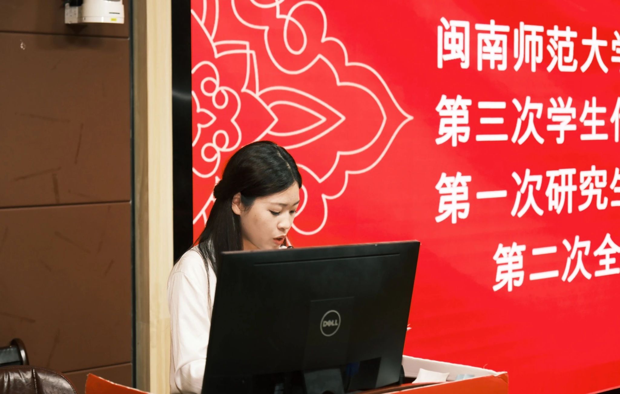 大会进行第一次全体会议,学生会主席团成员繆祉靖致开幕词并作工作报告,她全面回顾了过去一年学生会在维护学生权益、举办文体活动、促进学术交流等方面的努力与成就,并针对问题作出未来工作展望,努力做到加强思想引领、强化组织建设、丰富校园文化、提升服务水平。