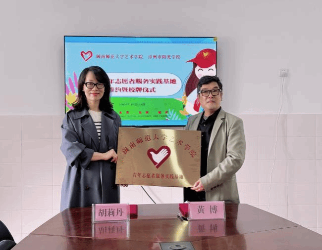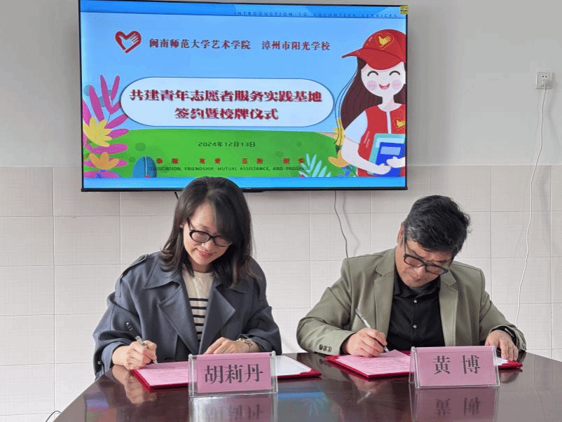 与漳州阳光学校隆重举行共建青年志愿者服务实践基地协议签约暨授牌仪式。阳光学校党委书记黄博和动漫在线