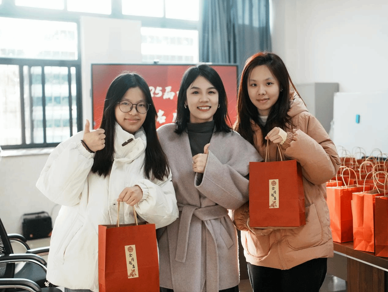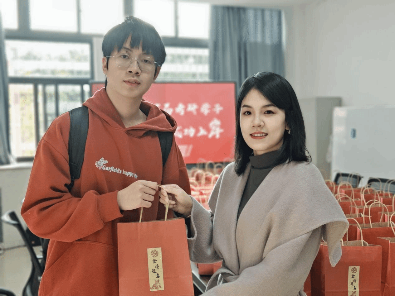“福气旺旺”助力学子“一战成硕”,“心想事橙”祝愿学子梦想成真,辅导员手写明信片赠言寄语,将温暖的祝福在指尖和笔端缓缓传递,意蕴金榜题名的文具福袋,陪伴考研学子跑完“最后一公里”,助力考研冲刺。每一份物品都承载着诚挚的祝福,饱含了学院全体师生对考研学子们浓浓的关爱和殷切的期盼。