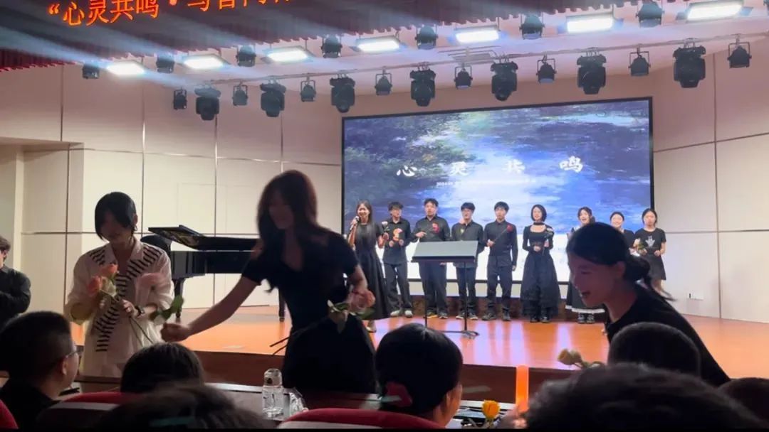 终曲的合唱中特别增设了暖心卡片与鲜花赠予互动环节。班级同学提前在卡片中写下治愈话语,这些承载着温度的卡片与鲜花在合唱中向观众传递,成为流动的情感纽带。观众们纷纷表示,获得鲜花与卡片的过程,既是对自己的鼓励肯定,也感受到更多温暖。