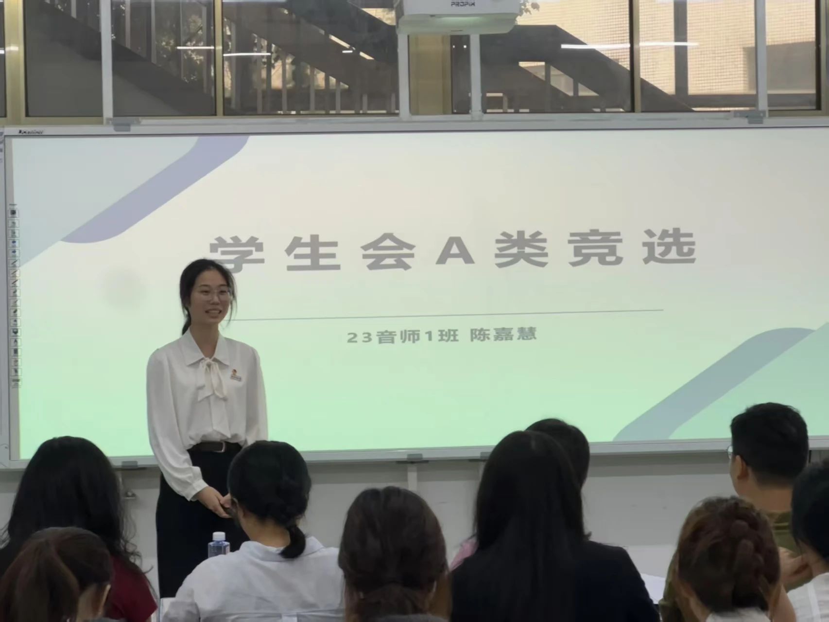 在旧图201成功举办 A 类学生干部竞选活动。党委副书记胡莉丹、团委副书记李新航、全体辅导员及各组织A类学生干部参与本次活动,共计51名同学参与竞选。