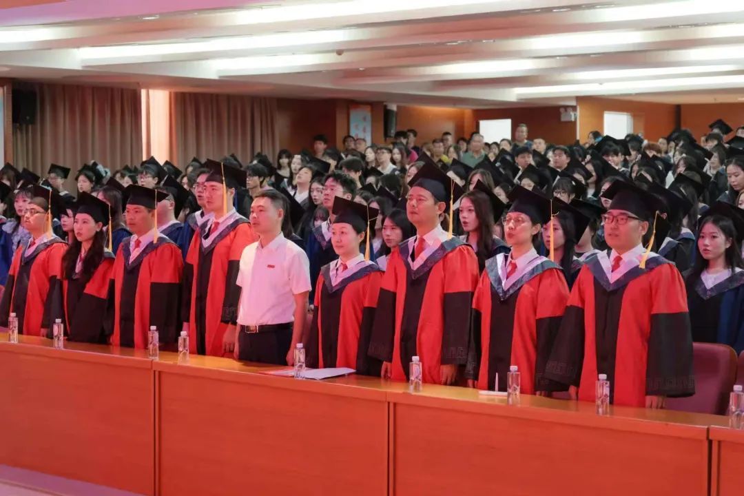 在逸夫图书馆报告厅举行2025届学生毕业典礼暨学位授予仪式。学院党政领导、学位评定委员会、系主任、全体辅导员、2025届毕业生和部分家长朋友参加典礼,典礼由学院党委副书记胡莉丹老师主持。