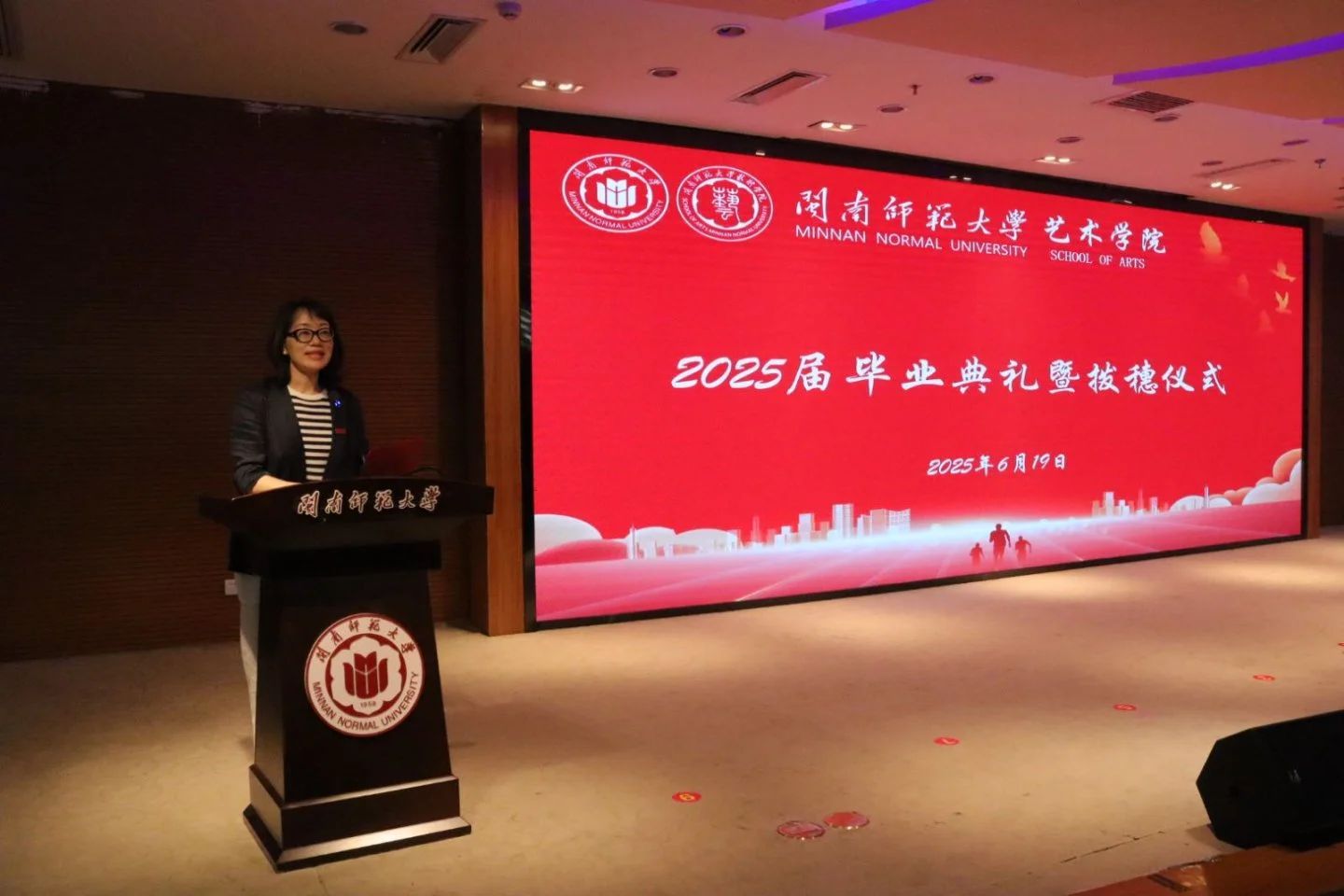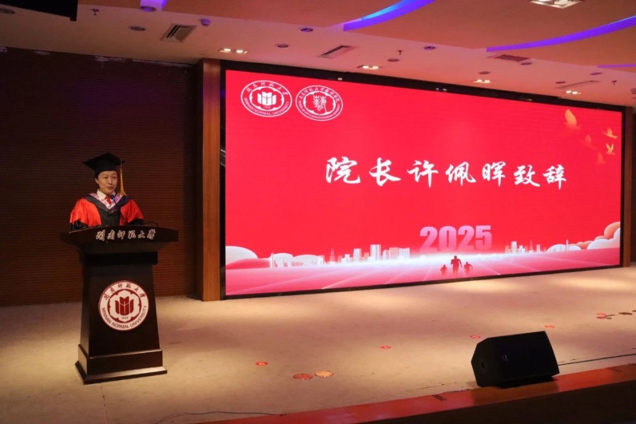 艺术院长许佩晖教授致辞。许院长代表学院向毕业生表示祝贺,向辛勤培育的老师和支持的家人表示感谢。在回顾同学的学习与成长的同时指出,毕业生正迎来“数智技术重塑艺术的时代”,艺术的边界不断拓展,鼓励学子“敏锐捕捉时代脉搏,在艺术与科技、商业等领域的交叉点探寻创新之路”,她深情寄语毕业生用艺术才华创造美好,为推动艺术事业贡献力量。