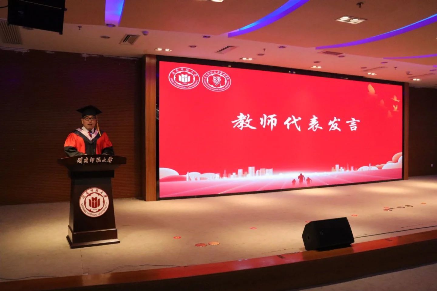 美术与设计系的刘北一老师代表全体教师发言。刘北一老师强调“大学之大,知识之大;大学之大,学生之大”,大学是储备知识、提升思维并拓展视野的殿堂,并以自身经历勉励学子,“热爱可抵岁月漫长”,呼吁毕业生坚守艺术初心,“以美的感知、美的创造逐步肩负起家庭、职业、社会及时代职责”。