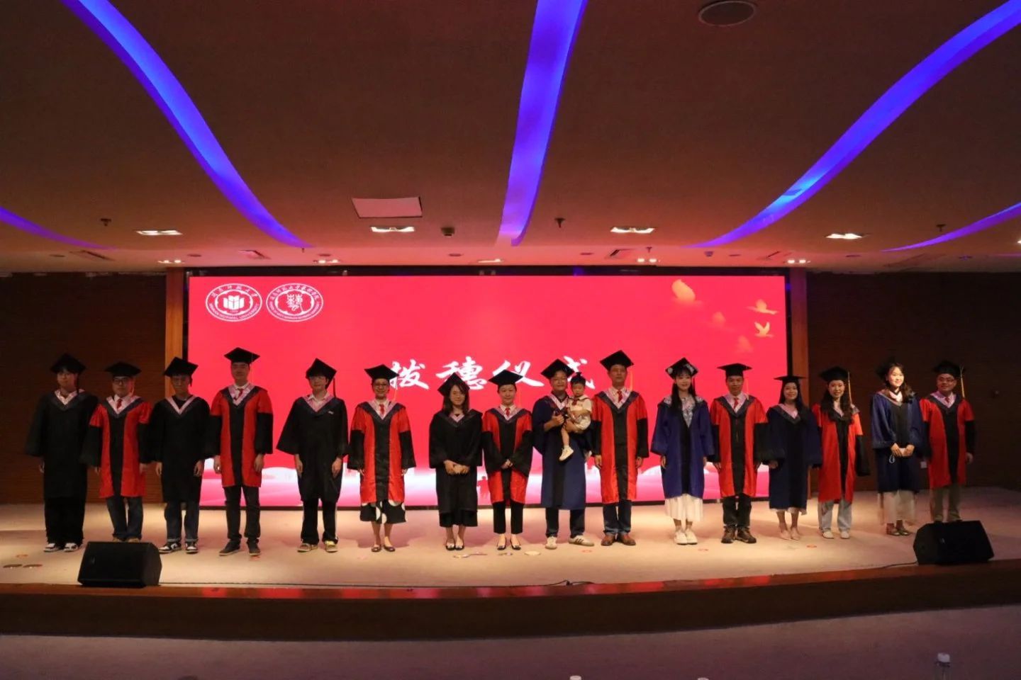 院学位委员会成员依次为毕业生代表拨穗正冠。