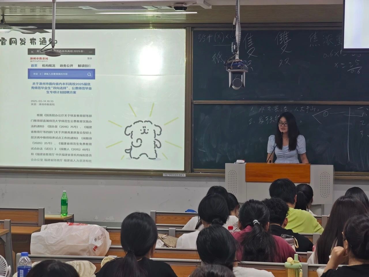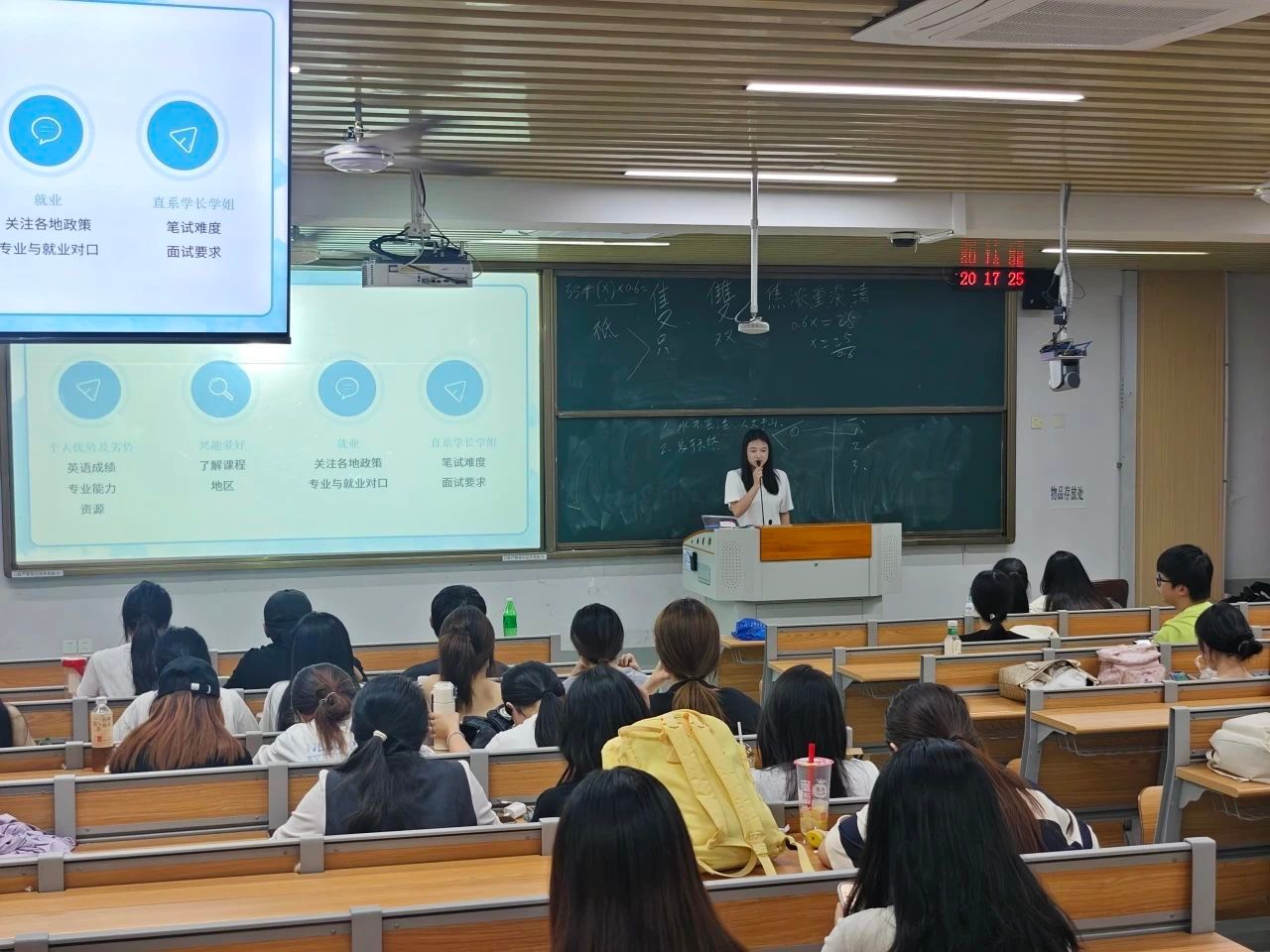近日在砺志楼315教室成功举办优秀毕业生考研、教招经验分享会。活动特邀8位2025届毕业生担任主讲,聚焦考研备考与教师招聘(教招)两大主题进行深度交流。