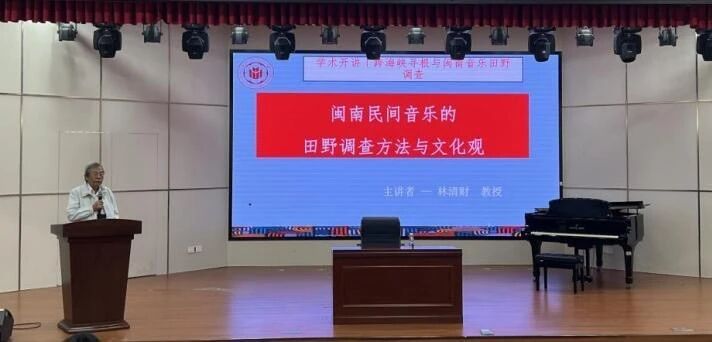 11月3日上午,林清财教授在多功能演播厅为学院师生带来题为《闽南民间音乐的田野调查方法与文化观》的专题讲座。林教授聚焦闽南音乐的“在地性”与“口传传统”,阐释了音乐作为地方性知识的活态表达。他提出研究者在田野工作中应具备观察者、参与者和记录者三重角色定位,强调从“融入”到“共情”的递进过程。讲座尾声,林教授以一曲西拉雅古调带领师生沉浸体验,让在场师生深切感受到活态传承的文化意义。