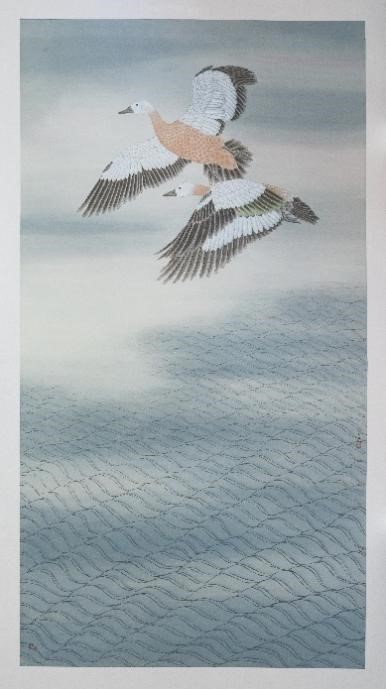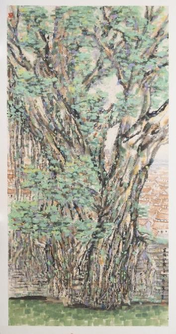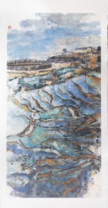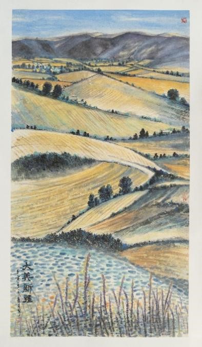 以淋漓笔墨勾勒土楼烟雨、鼓浪潮音,融自然、人文与历史于一体。《漳州古城》虚实相生,榕树苍劲、古厝朦胧,尽显闽南古韵;《土楼神韵》将世界遗产与梯田韵律相融,传递人与自然共生的东方智慧;《大美新疆》则以饱满彩墨捕捉金秋壮美,注入土地的厚重与生命的温度。三作跨越地域,共绘中华文化多样图景。