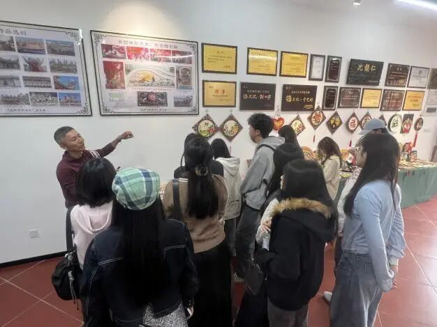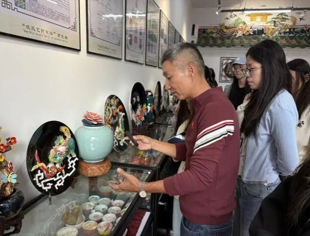 同学们在沈锡仁先生的诏安剪瓷雕陈列馆中体验剪瓷雕工艺