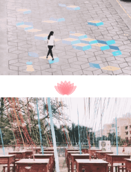 建筑上的立面艺术,七彩绚丽的飘带与画架的结合,诠释着艺术学子缤纷多彩气息,装置在走廊上的“梦之蓝”预示着承载着闽师学子的梦想与希望即将飞向四方。