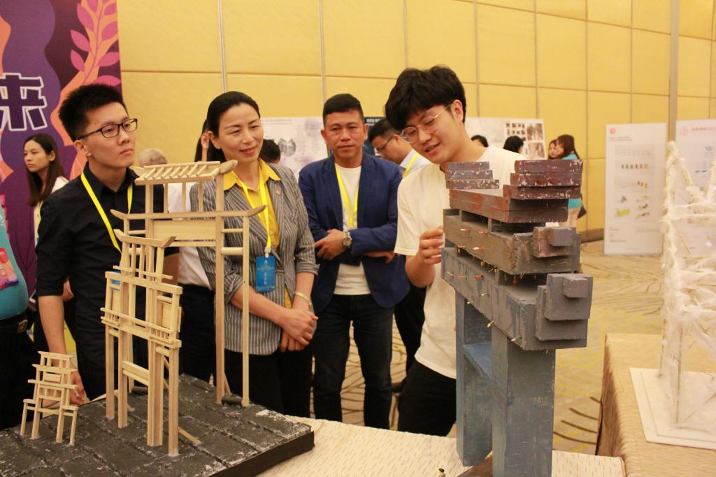 应邀选送近20件学生优秀作品参展。作品包括乡村规划设计方案、单体建筑模型、文创产品设计作品以及公共艺术装置作品等。精美而又富有创意的作品吸引了参加论坛的领导、两岸嘉宾驻足参观。漳州市副市长吴卫红仔细观赏了每件作品,询问学生的创作理念,并给予充分肯定,也表达了对年轻人的期许。