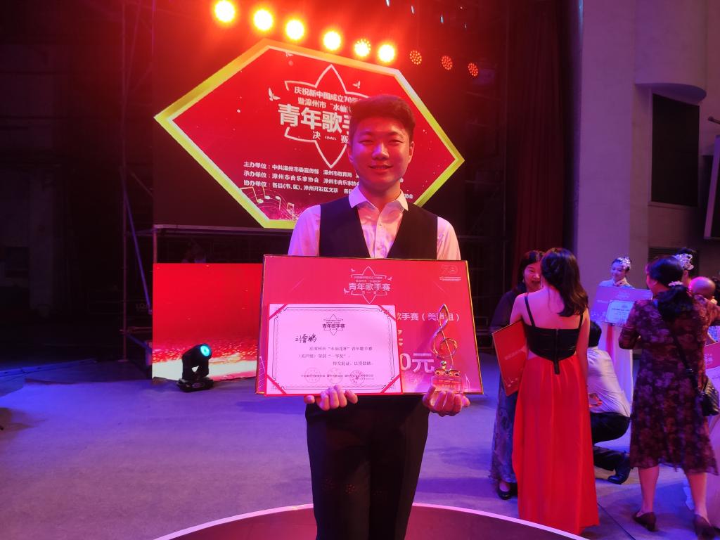 参赛选手刘霄鹏(指导老师:卓颐副教授)先后以意大利歌剧选段《你再不要去做情郎》《你赢得了诉讼》等两曲目,从参赛者中脱颖而出。这是该生继2019年7月在西湖国际青少年音乐节声乐艺术节中获得高等院校专业组美声独唱金奖之后,摘取的又一专业赛事奖牌。