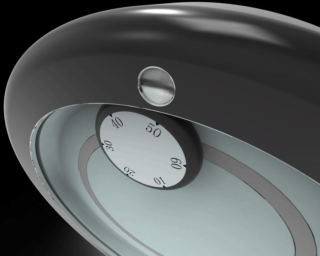 林财木同学《地月钟》,从“月球围绕着地球旋转”的概念来设计这款钟,月球就像是地球的守望者,而我们设计者就像是自己产品的守望者,同样的执念,让我们不舍昼夜,并为这款钟取名:地月钟。使用圆形分针取代了以往分针的展现形式;镂空圆点指示十二点钟,取代以往的时针。灰色大圈的公转带动小圆分针的旋转。分针上有10-60分读数。分针与时针两者的紧密联系在位置关系上形成了彼此相容的联系。充分利用磁悬浮平衡原理的运用,地月相容的设计依托,开创钟设计的新方向。
