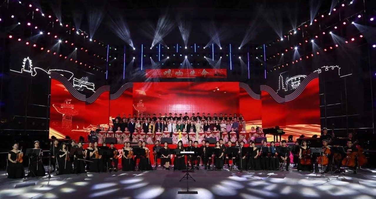 音乐会的最后,在全场齐唱《没有共产党就没有新中国》中圆满落幕。
