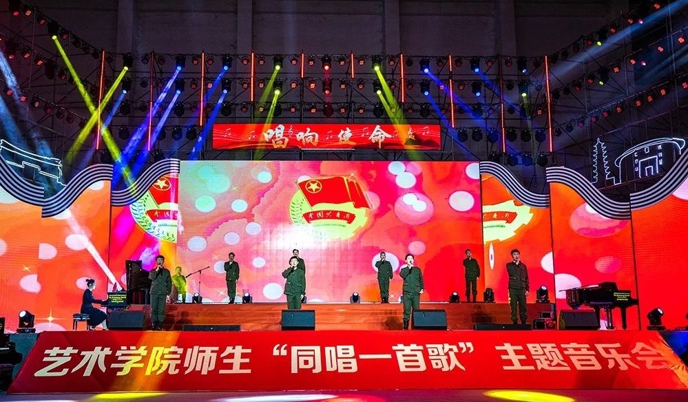 师生们以音乐表演、绘画展览的方式回望初心之路,展现红色革命文化,表达对祖国的热爱和对新时代的礼赞。