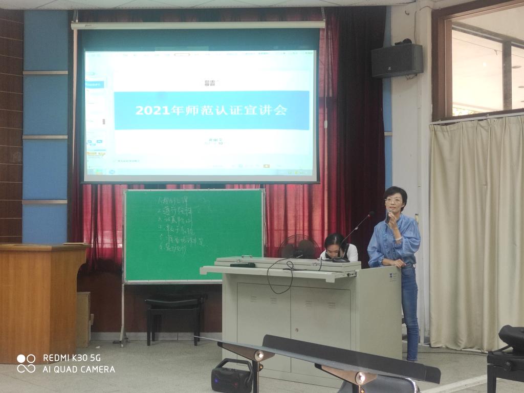 会上,音乐与舞蹈系主任黄丽荧作了音乐学(师范)专业认证知识宣讲。黄丽荧首先详细介绍学院发展历程、师资队伍建设情况,紧接着从师范类专业认证的认证理念与标准、基于产出导向的课程与教学和专业情况等三部分,详细介绍音乐学(师范)专业认证的基本情况。同时,重点阐述了“学生中心、产出导向、持续改进”的认证理念和“一践行三学会”培养方案的运用。