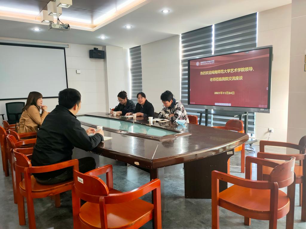 美术与设计系主任陈斌、教务科科长杨瑾瑜一行前往福建师范大学美术学院开展专业认证工作学习交流。福建师范大学美术学院院长罗礼平、副院长王英瑛、学院教学科研管理办公室主任刘文凯出席交流会。