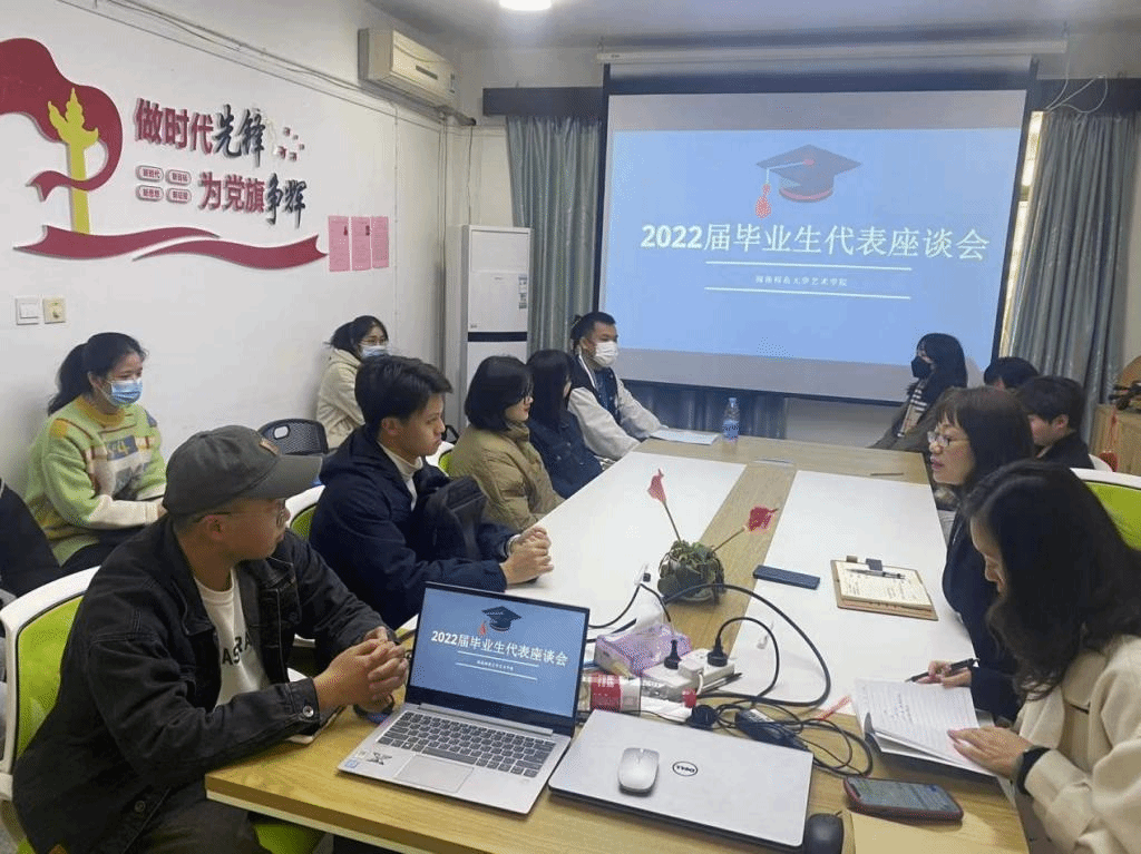 座谈会上,毕业生代表依次发言,就在校期间学习、生活上需要改进的地方,向学院提出了意见和建议。胡老师与同学们亲切交谈,她和同学们在学习场地与管理、学校基础设施的建设与完善、职业规划等方面进行了深入交流。