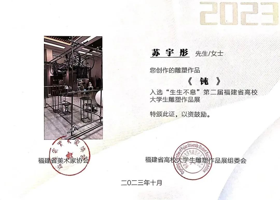 学子苏宇彤作品《钝》成功入选。