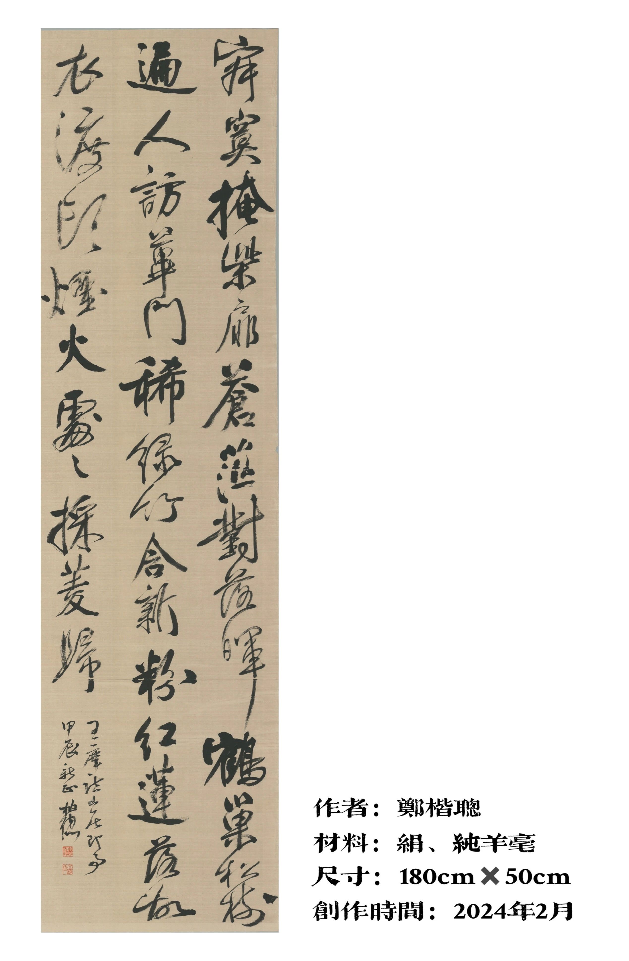 青年教师郑楷聪的楷书、行书两件作品入展,福建省两体入展的书法家仅5人。此次大赛在各省、直辖市、港澳台初赛的基础上,共有17368件作品进入复评、终评加面试,最终965件作品入展,其中楷书215件,行书237件。
