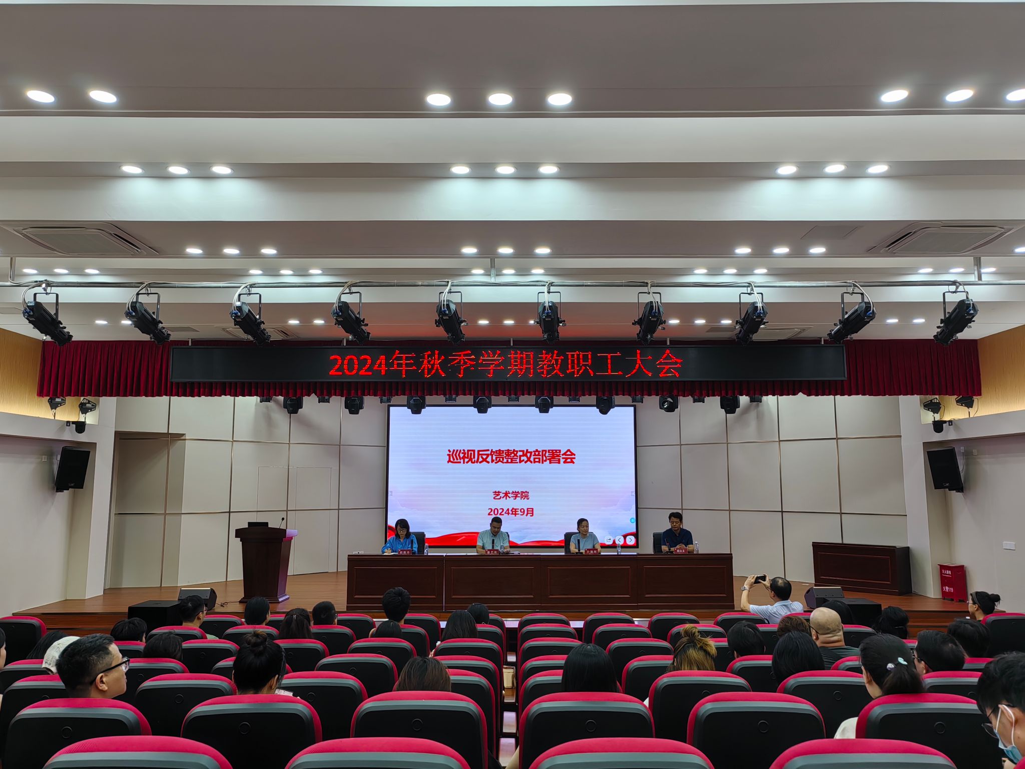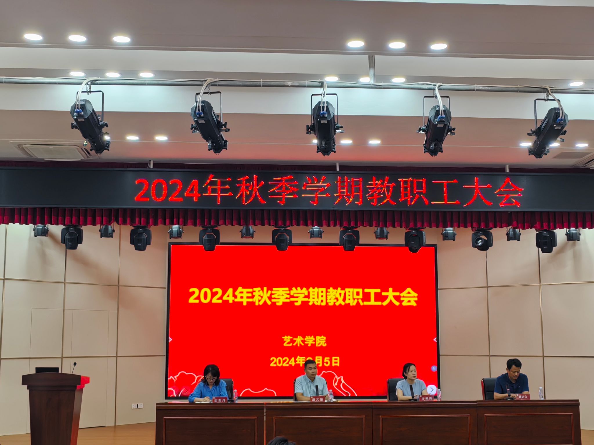 在多功能演艺教室召开2024年新学期教职工大会,学院党政领导班子、全体教职工参加会议。会议由学院副院长(主持工作)许佩晖主持。