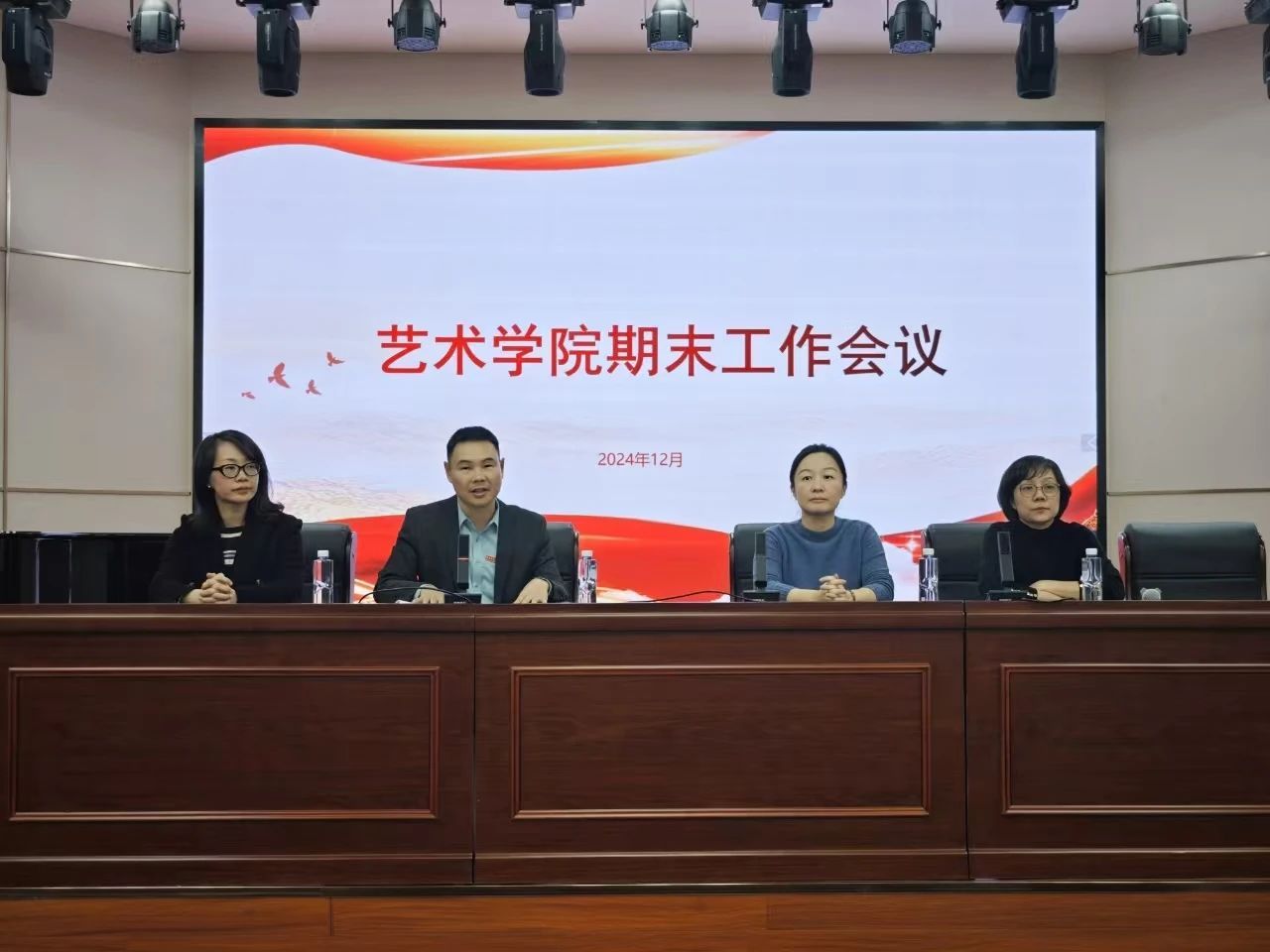多功能演播厅召开期末教职工大会,学院领导班子及全体教职工参加,会议由院长许佩晖主持。