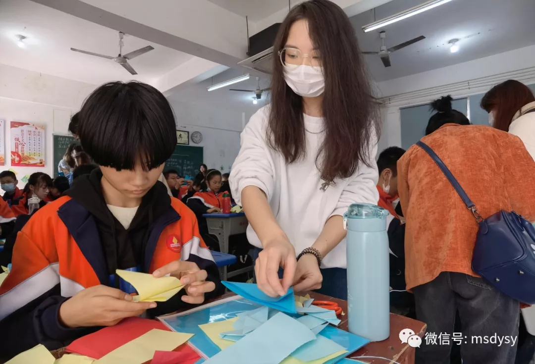 本次党日活动,师生党员积极发挥音乐、美术专业优势,走进道周中学教室开展以“红色公益进课堂,设计下乡助振兴”为主题的党日活动,开展认识乐器、学唱红歌与制作五星红旗等一系列“艺术下乡”活动。