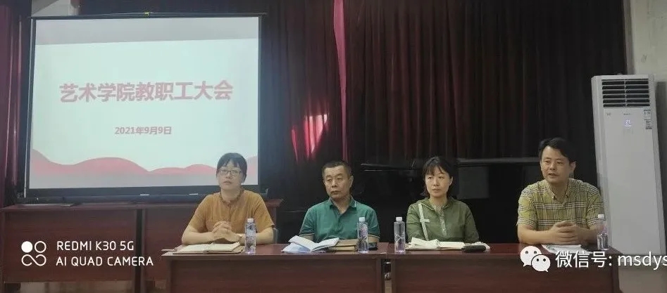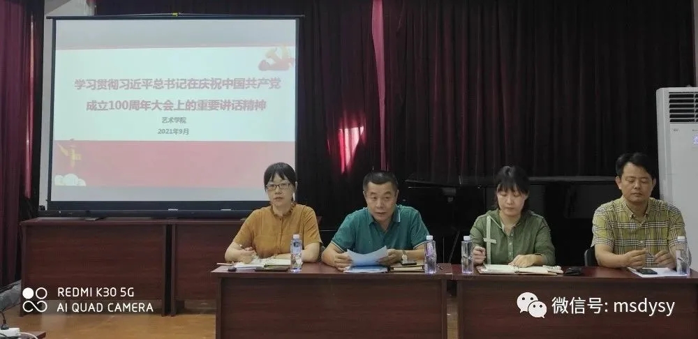 在习奏习唱室召开新学期教职工大会,组织学习传达习近平总书记在庆祝中国共产党成立100周年大会上的重要讲话精神,学院党政班子出席会议,全体教职工参加会议。会议由学院副院长许佩晖主持。