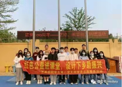 学第二党支部结合支部立项,前往漳州市芗城区、长泰区、诏安、云霄、漳浦、南靖等一市二区四县共9所学校,服务学生共计1200余人,以美育人,用艺术介入的方式传播红色文化,满足中小学生的精神文化需求。