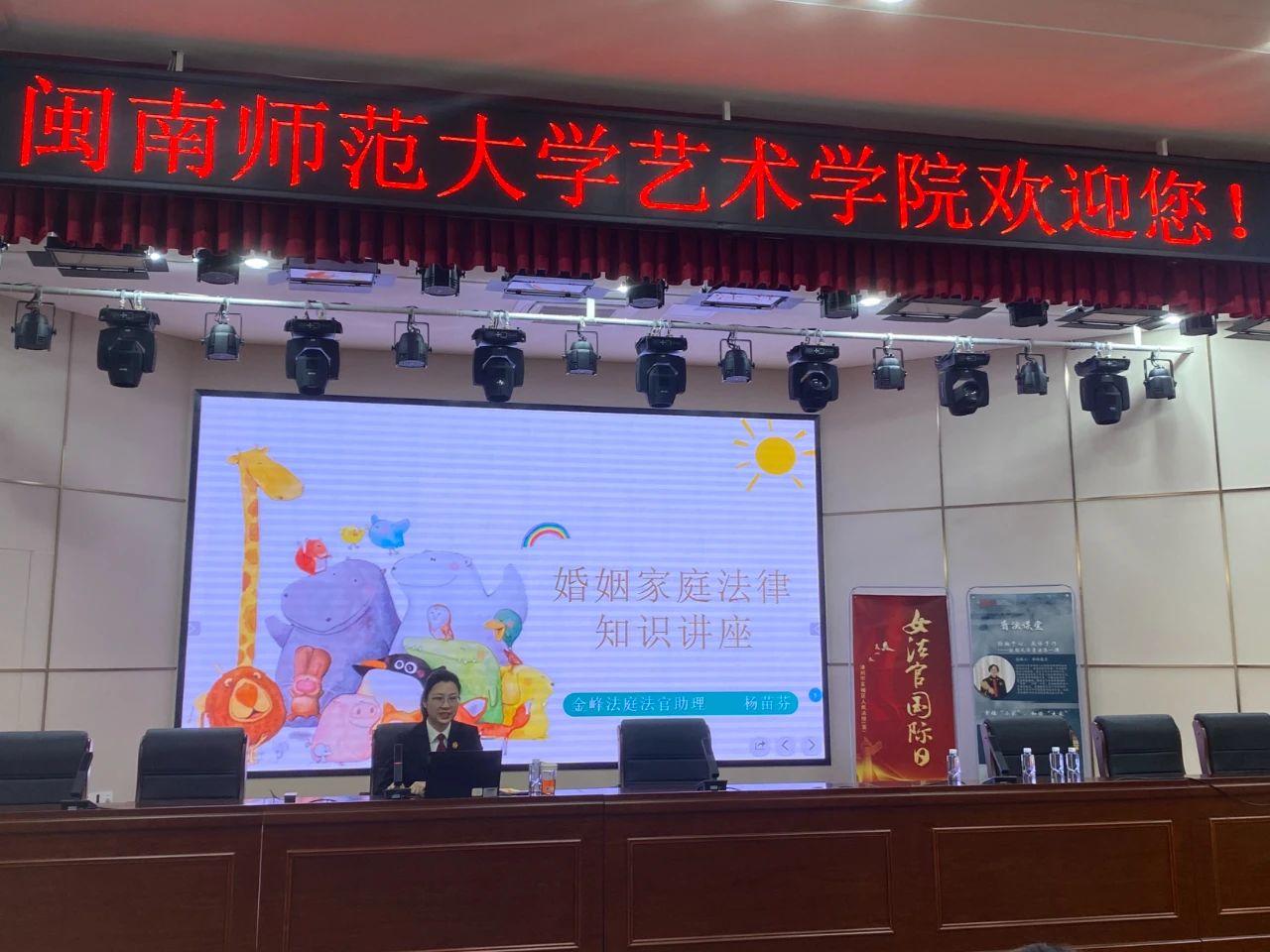 第二课的主题为“幸福小家,和谐大家”,旨在普及婚姻家庭法律知识。婚姻家庭是社会的基本单位,法律对于婚姻家庭的规范具有重要意义。芗城区人民法院金峰经济开发区人民法庭四级法官助理杨苗芬通过生动的案例,向师生讲解了婚姻家庭法律的基本原则和相关规定,教育大家如何处理婚姻家庭中的纠纷和问题,维护自身合法权益。在场师生表示,这堂课对于他们了解婚姻家庭法律知识,增强法律意识,构建和谐家庭具有重要意义。